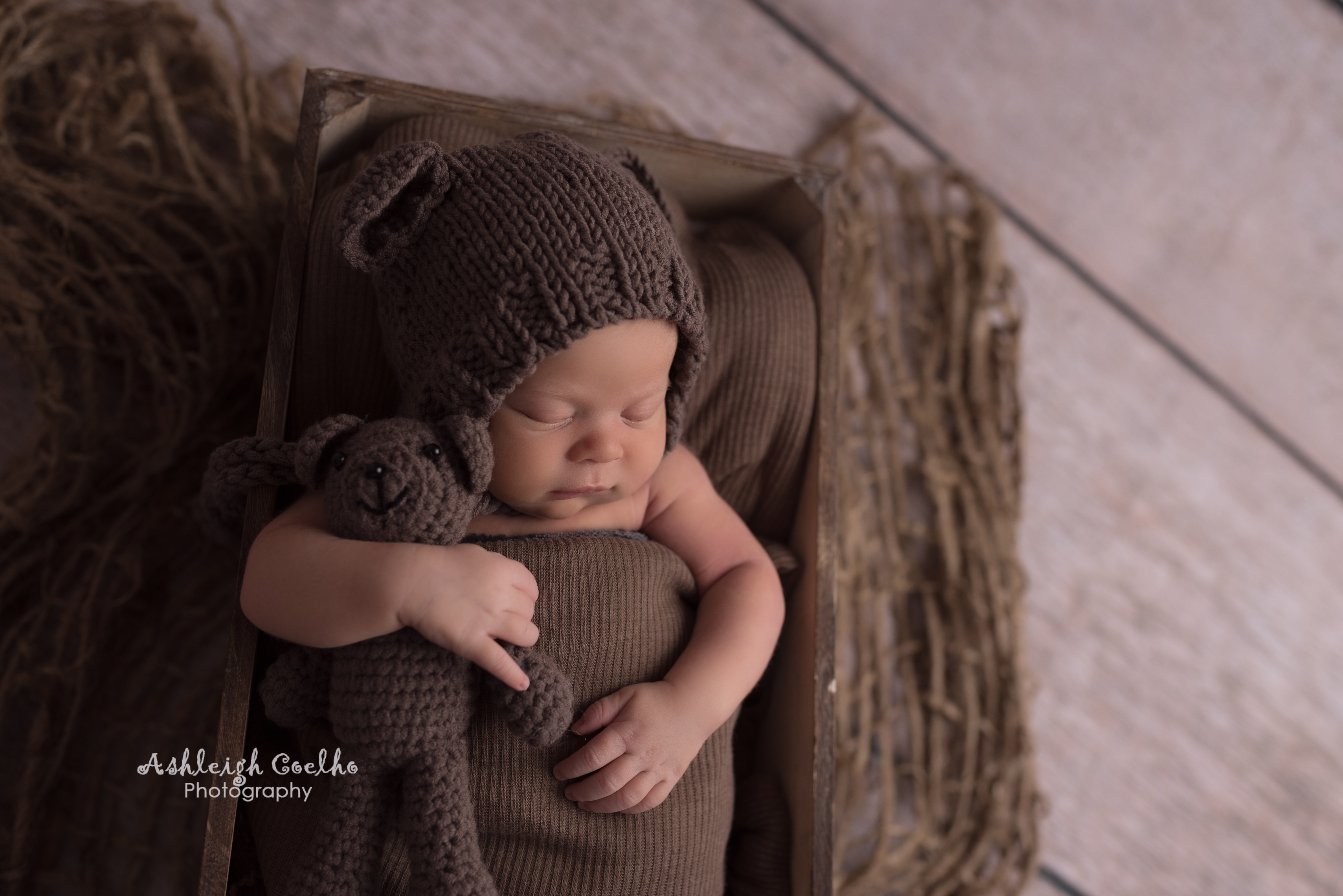Sweet Brayden was a joy to photograph and I was able to capture a variety of shots during his newborn session. One of my favorite photos is the first one below – showing how little he is in his daddy’s arms melts my heart. I also love his little smile in the potato sack pose (second picture) and him holding that sweet teddy bear while wearing the matching bear bonnet in the third picture. His mom got me hooked on what she called a “grandpa hat” aka a knot sleepy hat (fourth picture) – I now think it’s a must for every boy newborn session I will hold from here on out haha (of course upon parent approval).
