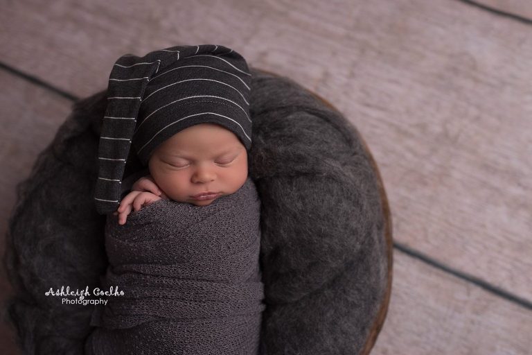 Sweet Brayden was a joy to photograph and I was able to capture a variety of shots during his newborn session. One of my favorite photos is the first one below – showing how little he is in his daddy’s arms melts my heart. I also love his little smile in the potato sack pose (second picture) and him holding that sweet teddy bear while wearing the matching bear bonnet in the third picture. His mom got me hooked on what she called a “grandpa hat” aka a knot sleepy hat (fourth picture) – I now think it’s a must for every boy newborn session I will hold from here on out haha (of course upon parent approval).