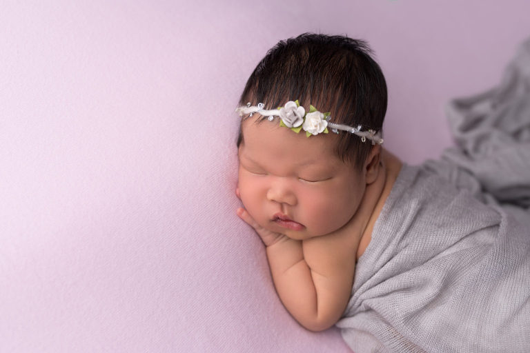 Grays and pinks were the colors requested for Chloe’s newborn session and that combination looks so adorable! I’ve been getting more gray requests for boy and girl newborn sessions and that has turned out to be a great accent color for both genders! Her parents had told me during her session that they actually had the same the gray/pink color combo at their wedding – how special!