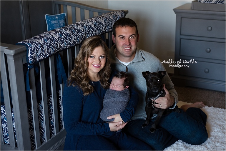 Lastly, but certainly not least, we involved their dog, Lexie, in their maternity and newborn sessions. I shot their maternity session at Erwin Park (check it out here) and took their family pictures at their house in Prosper. Lexie was very well-trained. I got the family set up by Holden’s crib, then she just jumped into the picture for a quick shot – perfect!