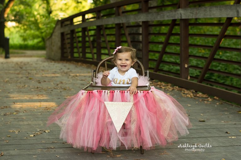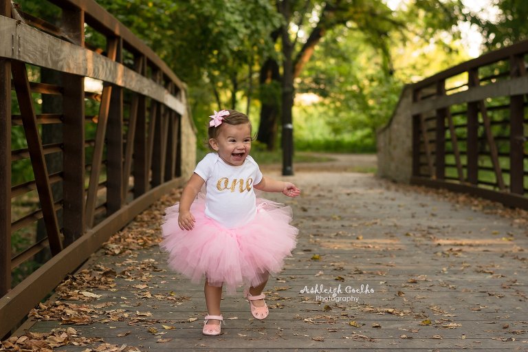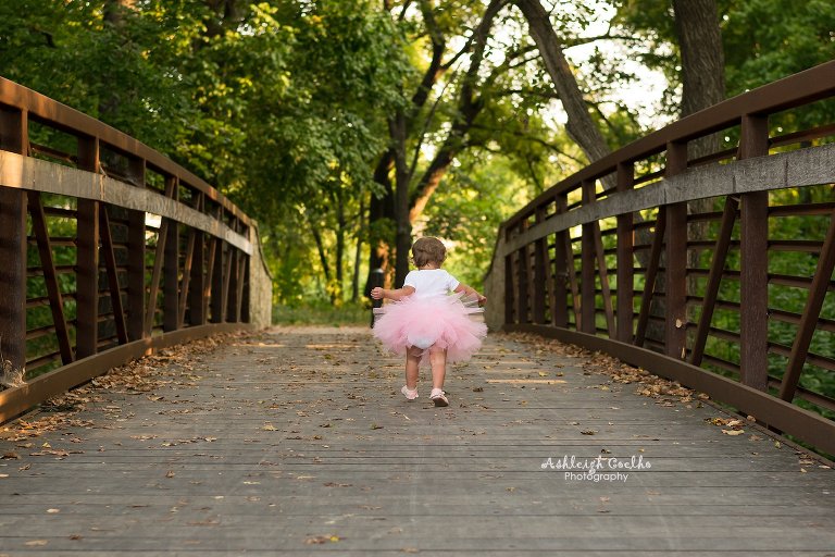 It’s not often that a one year old can walk as well as Landyn could.  Photographing her walking up and down that bridge was so adorable – especially with that cute tutu bouncing along with every step.  Another thing that I’ve noticed a lot of one year olds don’t have is hair – but she had plenty of it.  I love how you can see just a little bit of curls forming at the ends.