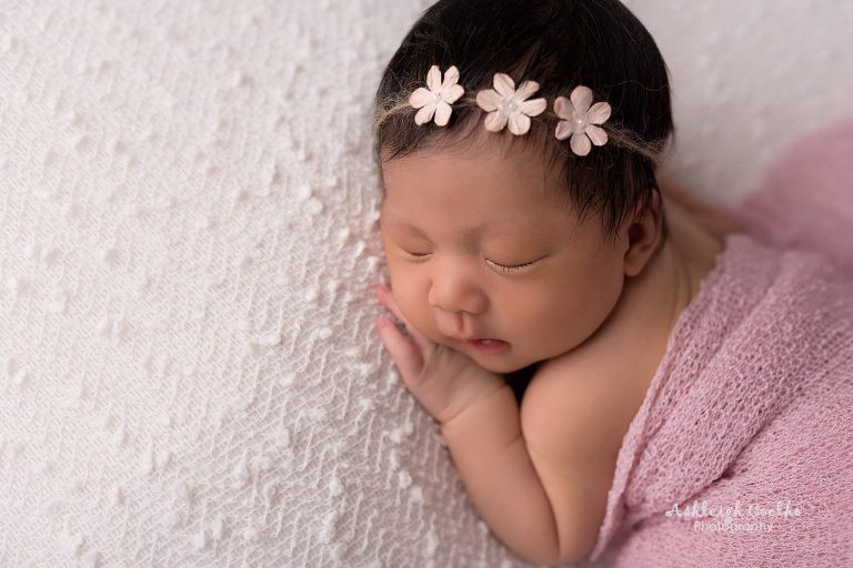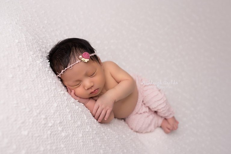 Just look at that sweet face – Chloe is such a doll! She took a little extra time to fall into her deep sleep and pretty sure she wins the award for drinking the most milk during her newborn session – but it was worth the wait! I love the outcome of her session! The pinks, whites, creams, lace – all look so adorable on her!