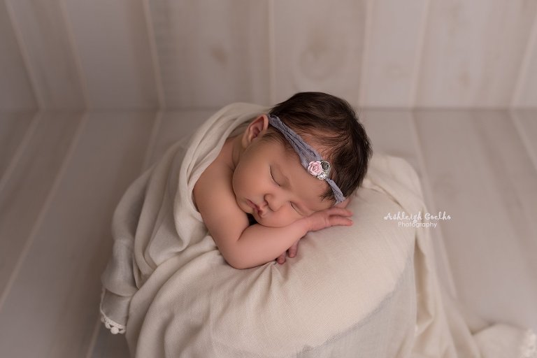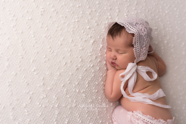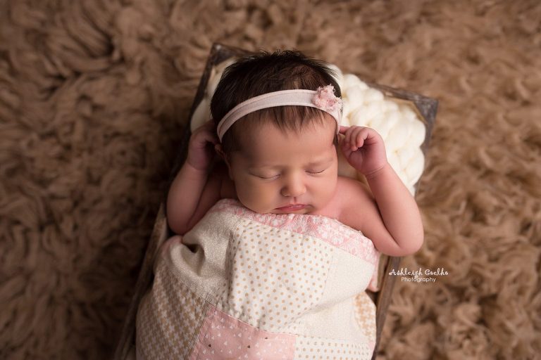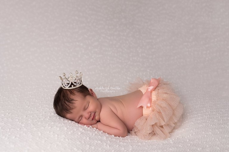 If you scroll to the last two images – the peach tutu and matching headband were given to Everly’s mom at her baby shower. I really enjoy adding sentimental items that moms bring in – it just makes their newborn session that much more special to parents. I even sneaked in a tiara with that tutu – and Everly just happen to give me a smile – perfect timing!