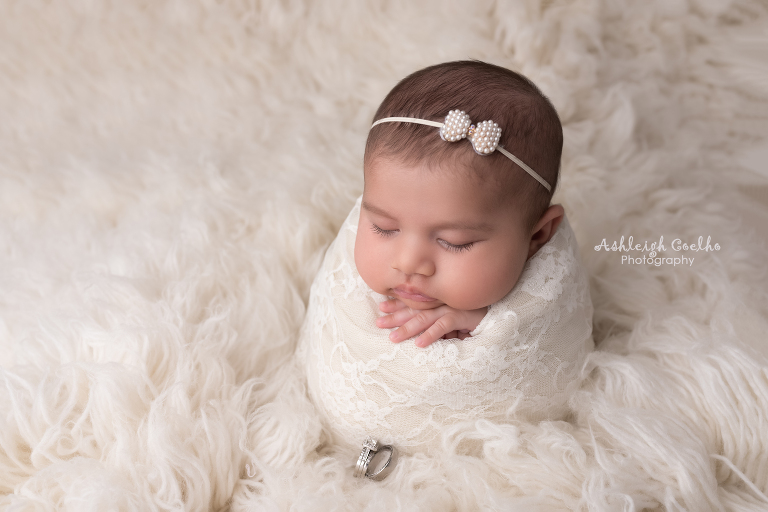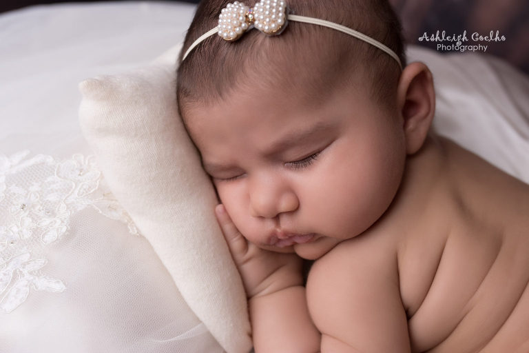 Below you will see the beautiful wedding themed images I captured of my sweet daughter and I added a few comments with some tricks that helped me for fellow newborn photographers viewing these images. Enjoy and be sure to comment which one is your favorite!