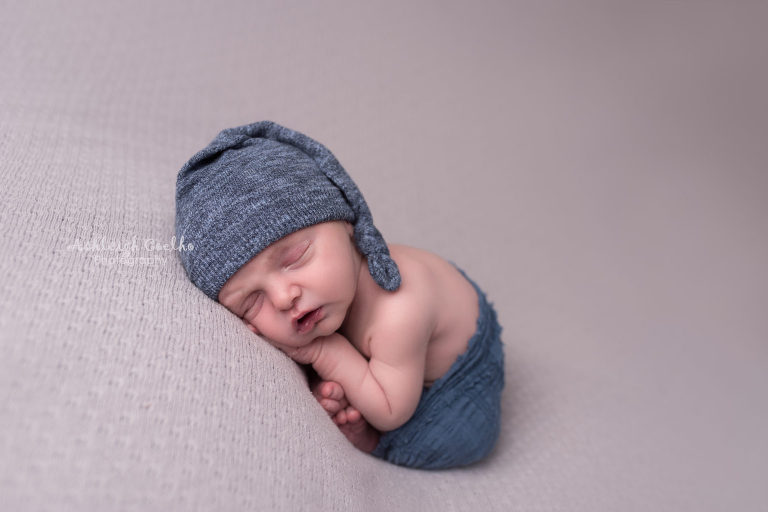 His newborn session included grays and blues during and I really love the outcome! We kept it simple and the focus on this adorable guy!